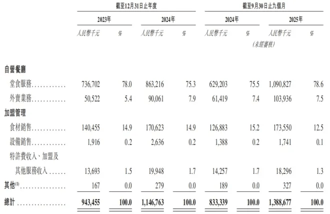 自营餐厅同店销售额在 2023 年至 2024 年间增长了 5.1%,2025 年前三季度同比增幅进一步达到 16.0%。