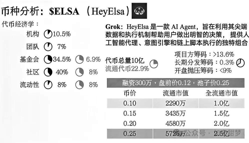 总量 10 亿,初始流通 22.9%,盘前价 0.12,池子价 0.25,总融资:300 万,分配代币 10.5%,机构平均成本币价为 0.0286