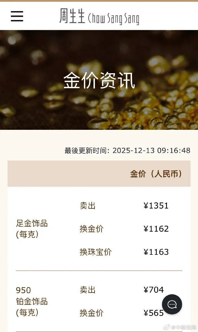 12月13日,周生生、老庙黄金、老凤祥等国内部分品牌金饰克价续创年内新高。周生生金饰涨至1351元/克,老庙黄金涨至1352元/克,两家品牌金饰克价均一夜上涨13元;老凤祥金饰涨至1345元/克。