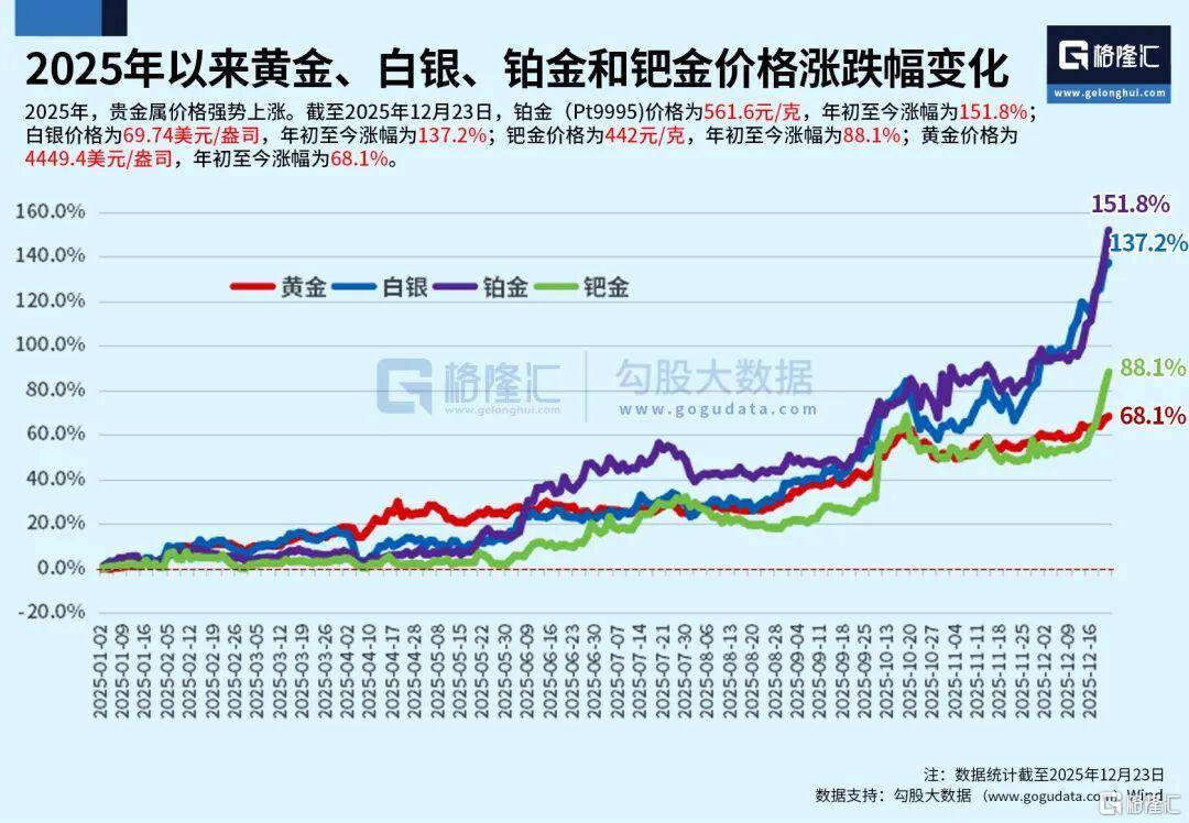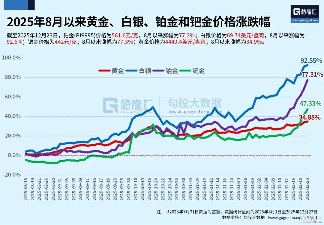 短短四个月:白银暴涨92%,钯金上涨77%,铂金涨了47%,黄金上涨35%。
