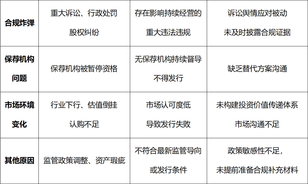 五、IPO批文后发行失败的“死亡清单”(原因归类)