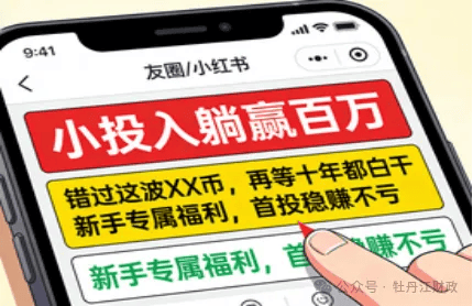 “小投入躺赢百万”“错过这波XX币,再等十年都白干”“新手专属福利,首投稳赚不亏”——刷朋友圈/小红书时刷到这些,你是不是也会多看两眼?