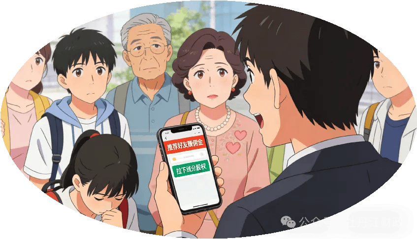 2.拉人头返现,传销式收割:搞“推荐好友赚佣金”“拉下线分股权”的套路,让你拉亲戚、室友、同学加入。很多人觉得“不用投钱,拉人就能赚”,其实你只是骗子的“工具人”,等没人再拉新,整个盘子就崩了,最后不仅自己亏,还坑了身边人。
