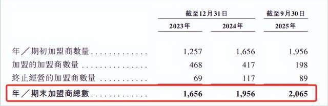 截至2025年前9个月,其4266家门店中加盟店占比高达95%,直营店仅19家。