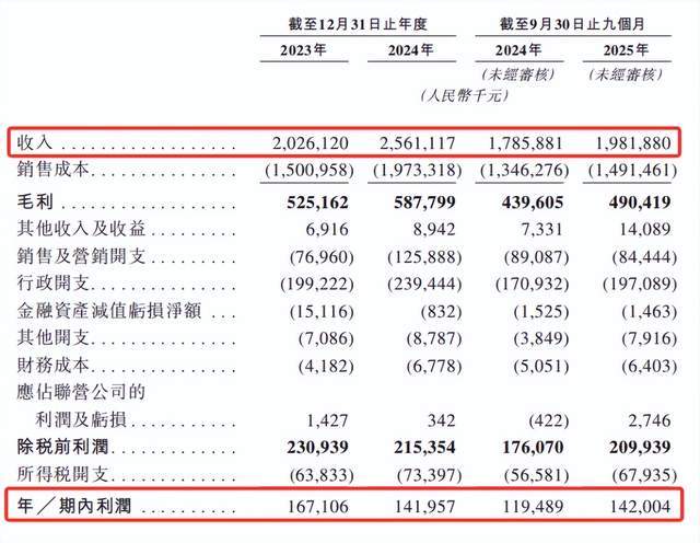 招股书显示,2023年至2024年,公司营收从20.26亿元增长至25.61亿元,同比增长26.4%,但净利润却从1.67亿元下滑至1.42亿元,同比减少15%。