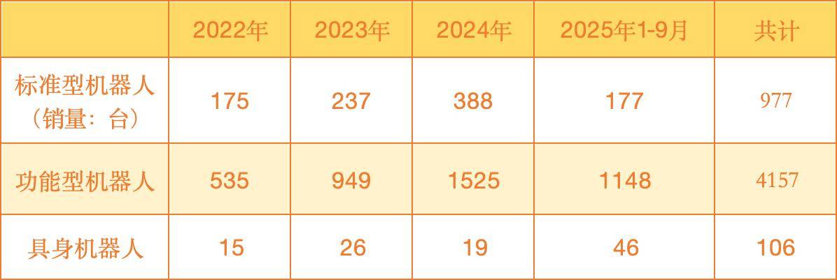 2025 年前1-9月,具身机器人实现收入1540.2万元,单台约33.4万元。