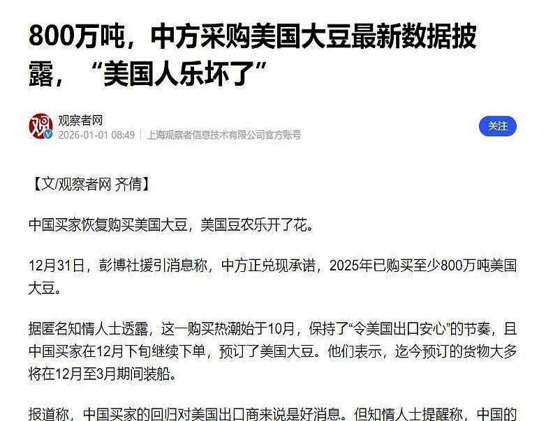 看到了吗?这不再是谁求谁,谁施舍谁。这是一场平等的交易,一场基于实力的对话。那几百万吨大豆,不过是这场大戏开场前,递给对方的一杯茶水,让大家能心平气和地坐下来而已。