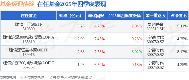 证券之星消息,截止2025年四季度末,基金经理薛玲旗下共管理4只基金,本季度表现最佳的为建信上证50ETF(510800),季度净值涨2.04%。