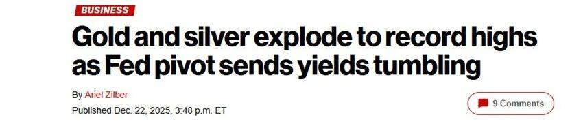 目前,华尔街普遍对黄金继续走高持乐观态度。《纽约邮报》发文称,贵重金属市场史上最剧烈的涨幅,反映了市场对美联储降息、全球冲突升级以及重塑贵重金属需求的机构购买潮的风险评估;美联储降息也降低了金属的阻力,因为美债收益率下降使黄金和白银对投资者更具吸引力。