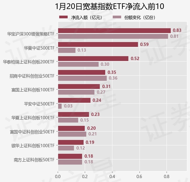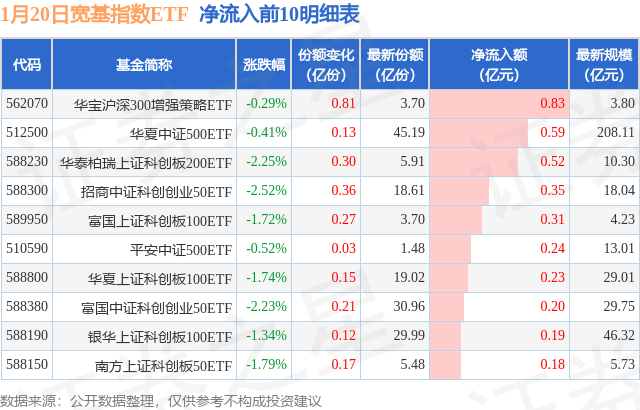 当日有42只宽基指数ETF基金出现资金净流入,其中净流入排首位的是华宝沪深300增强策略ETF(562070),份额增加了8100.0万份,净流入额为8312.11万元。