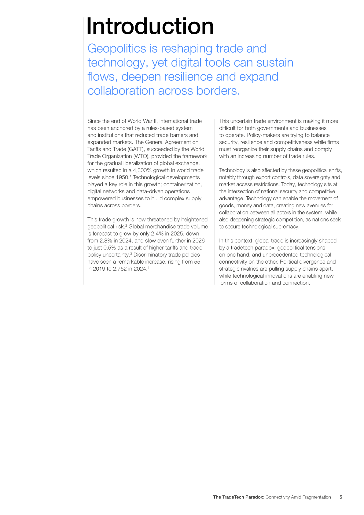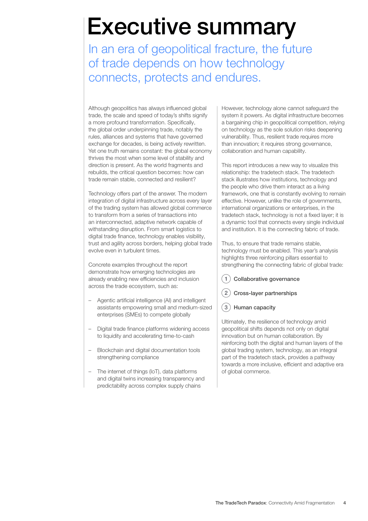 导读:报告提出 “交易科技栈” 这一核心框架,将全球贸易体系划分为全球基础框架、国家治理、贸易赋能者和企业四个相互关联的层级,而技术则作为贯穿各层级的连接纽带,重塑贸易效率与韧性。当前全球贸易面临增速放缓、保护主义抬头等问题,数字技术成为关键解决方案。智能 AI 助力中小企业参与全球竞争,区块链与数字文档强化合规性,物联网与数字孪生技术提升供应链透明度,数字贸易金融平台拓宽融资渠道。这些创新虽成效显著,但需依托协同治理、跨层合作与人才能力建设三大支柱。报告强调,仅靠技术无法保障贸易体系稳定。各国需通过双边及区域合作对齐政策标准,“连接器国家” 发挥中立枢纽作用,公私部门跨界协作完善基础设施与监管环境。数据基础设施建设、人才培养与伦理规范构建,是技术发挥长效价值的重要支撑,最终推动全球贸易在碎片化格局中实现更具包容性、效率与适应性的互联发展。