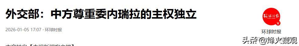 另一个原因则是美国国内的政治压力。2026年将举行中期选举,特朗普为了争取右翼选民的支持,需要塑造一个强硬总统的形象,通过军事行动来展示决心,这也是典型的选举策略。更深层的原因可能还与中美博弈有关,从特朗普的表态来看,他显然不想彻底撕破与中国的关系,反而刻意表现出友好的态度,称中美关系良好,并承诺不会影响中国从委内瑞拉进口石油。