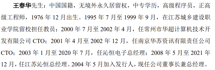 公司前身有限公司成立于2004年5月,2019 年 6 月整体变更为股份有限公司。目前注册资本6324.2187万元。公司控股股东为江苏沁恒股份有限公司,实际控制人为王春华。王春华通过直接持有公司股份并通过江苏沁恒、异或合伙间接持有公司股份,合计控制公司94.57%股权,控制权集中度较高。