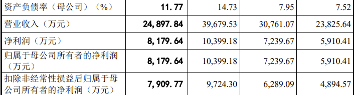 2022年、2023年、2024年及2025年上半年,公司实现营业收入分别为2.3826亿元、3.0761亿元、3.9680亿元及2.4898亿元,扣非归母净利润分别为0.4895亿元、0.6289亿元、0.9724亿元及0.7910亿元。