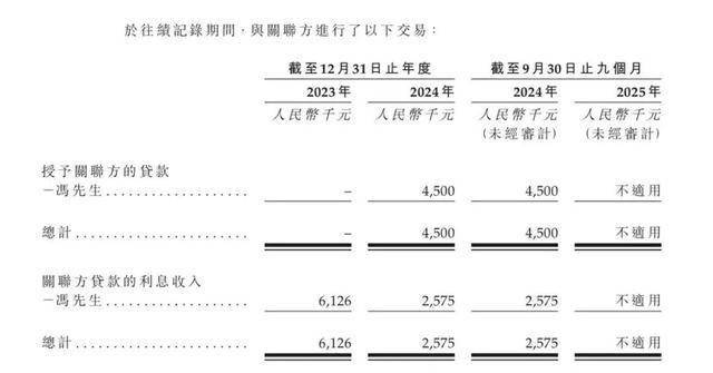 钱大妈借给冯冀生的钱是有利息的。2023年及2024年,钱大妈来自冯冀生贷款的利息收入分别为612.6万元、257.5万元。