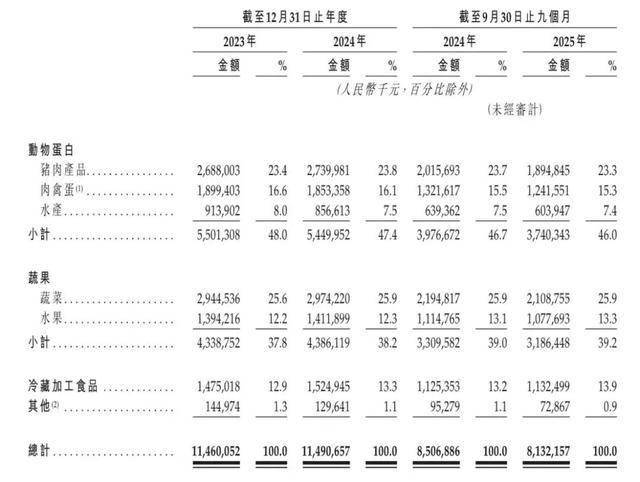 2023年及2024年,钱大妈产品销售收入分别为114.6亿元、114.91亿元。2025年前9个月,钱大妈收入81.32亿元,同比减少3.75亿元。
