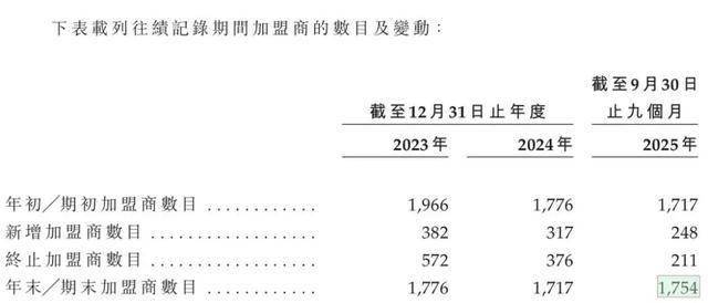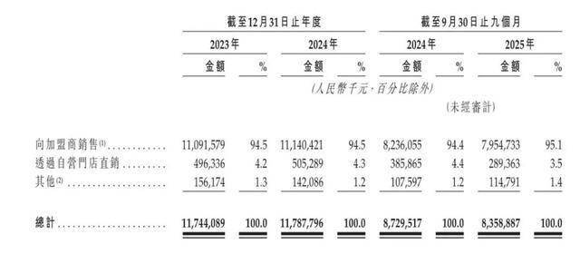 2025年前9个月,其向加盟商销售的收入同比减少2.81亿元,是其期内收入下滑的主要原因。
