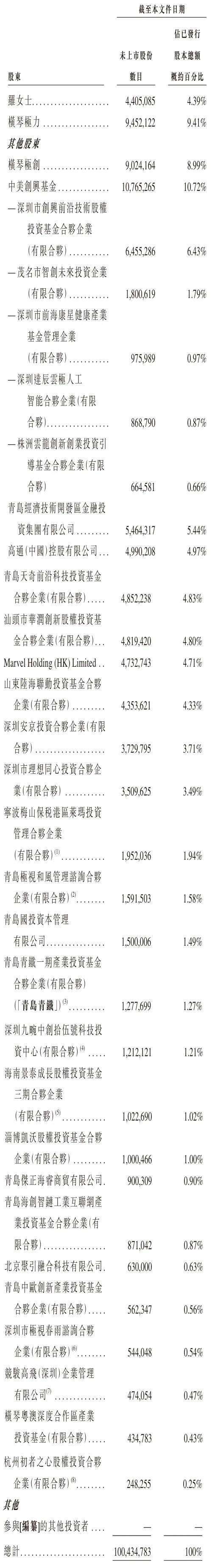 青岛经济技术开发区金融投资集团有限公司持股为5.44%,高通(中国)控股有限公司持股为4.97%,青岛天奇前沿科技投资基金合伙企业(有限合伙)持股为4.83%,汕头市华润创新股权投资基金合伙企业(有限合伙)持股为4.8%,Marvel Holding (HK) Limited持股为4.71%;