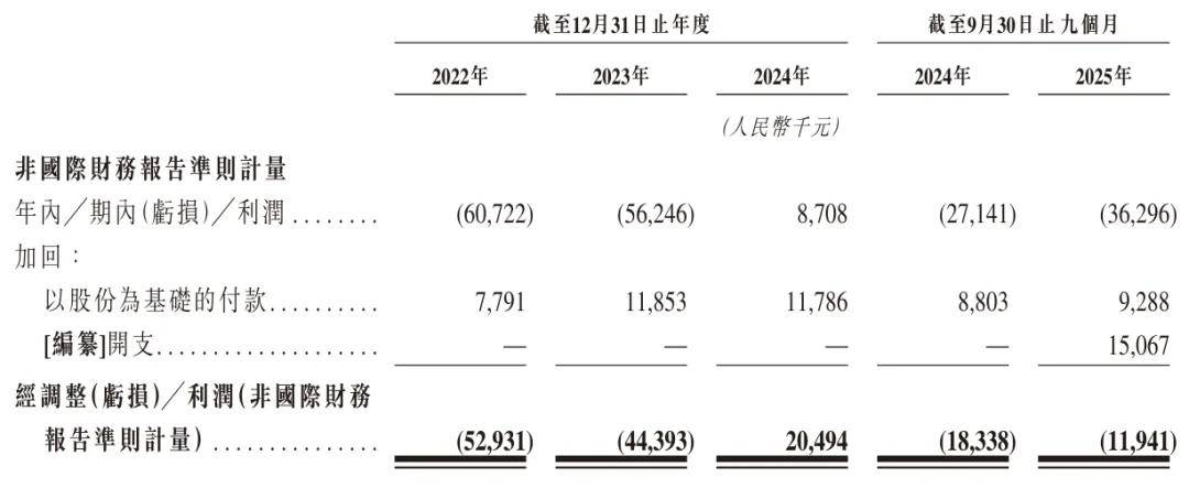 极视角2022年、2023年、2024年经调整净利分别为-5293万、-4439万、2049万元;2025年前9个月经调整净亏损为1194万元。