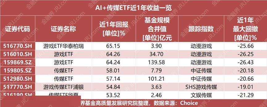 截至1月21日,从近一年表现看,跟踪中证动漫游戏指数的ETF涨幅居前超过60%,还是较为可观,跟踪中证传媒指数的ETF同样录得超过50%的涨幅,回撤控制在20%左右。