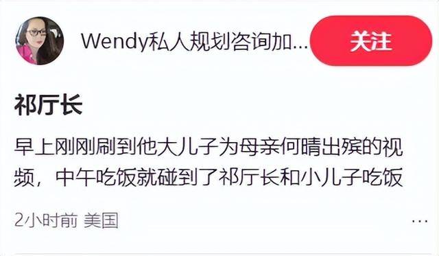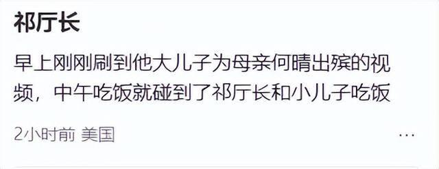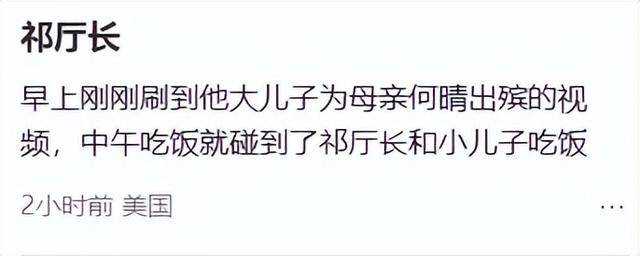有网友在美国一家中餐厅偶遇了演员许亚军,而就在几个小时前,他的大儿子许何刚刚在北京送别了母亲何晴。