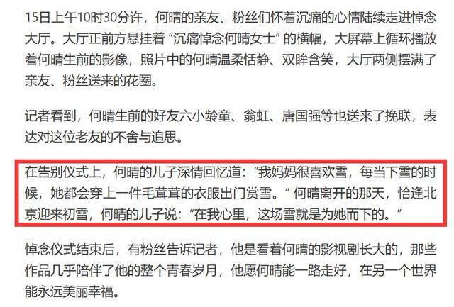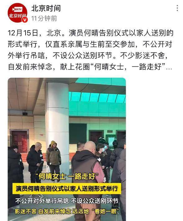 12月15日,何晴的追悼会在北京昌平殡仪馆举行。