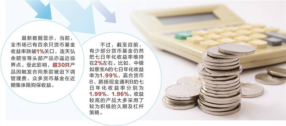 最近看到一则新闻,挺有感触的。证券时报报道,在“资产荒”的背景下,货币基金的收益率正在加速下滑,跌破1%已经成为普遍现象。截至12月19日(周五),全市场已经有超过120只货币基金的七日年化收益率跌破了1%的关口,连我们最熟悉的天弘余额宝也一度逼近这个临界点。受此影响,超过30只产品因为触发了合同条款,被迫下调管理费,还有很多货币基金近期开始集体限购,以保护现有持有人的收益。