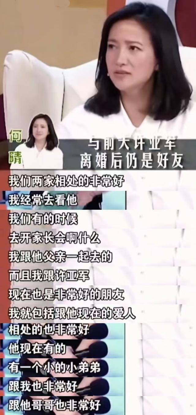 她曾公开表示,自己和许亚军,张澍,甚至张澍的儿子关系都非常好,她和许亚军还经常一起参加许何的家长会。