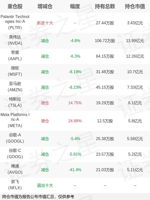 证券之星消息,1月22日国泰基金旗下艾小军管理的纳斯达克100交易型开放式指数基金公布年报,近1年净值增长率12.97%。与上一季度相比,该基金前十大重仓股新增Palantir Technologies Inc-A;其中英伟达持仓占比8.33%,为该基金第一大重仓股;奈飞等退出前十大重仓股;详细数据如下: