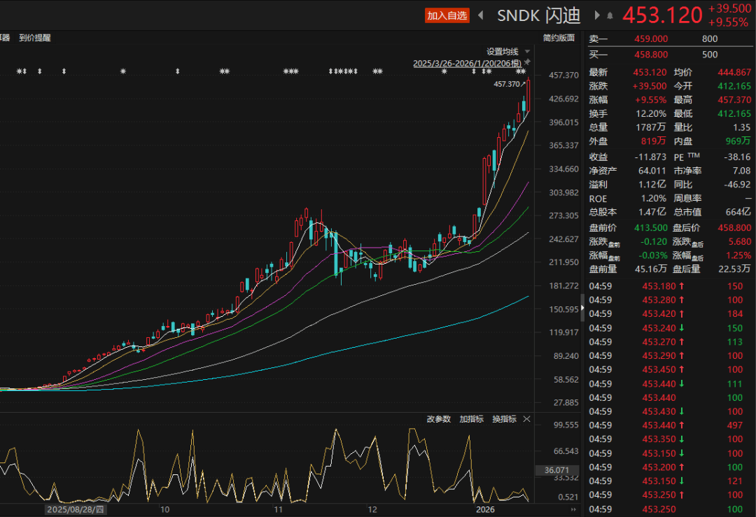 1月20日晚间,尽管美股大幅下跌,但多只存储概念股逆势上涨、齐创新高。其中,闪迪股价大涨9.55%,创下历史新高,年初以来涨幅已经超过90%。