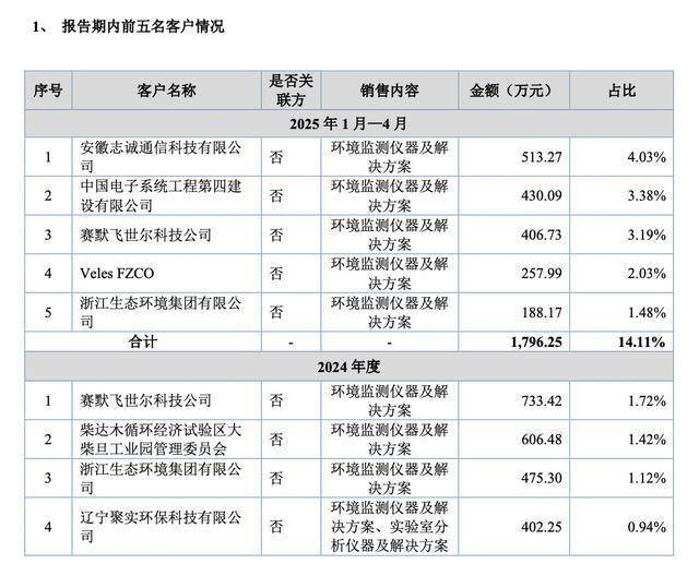 客户方面,2025年前4个月,中国电子系统工程第四建设有限公司、赛默飞世尔科技公司位列前五大客户;同时,赛默飞世尔科技公司也是2023年及2024年的第一大客户。