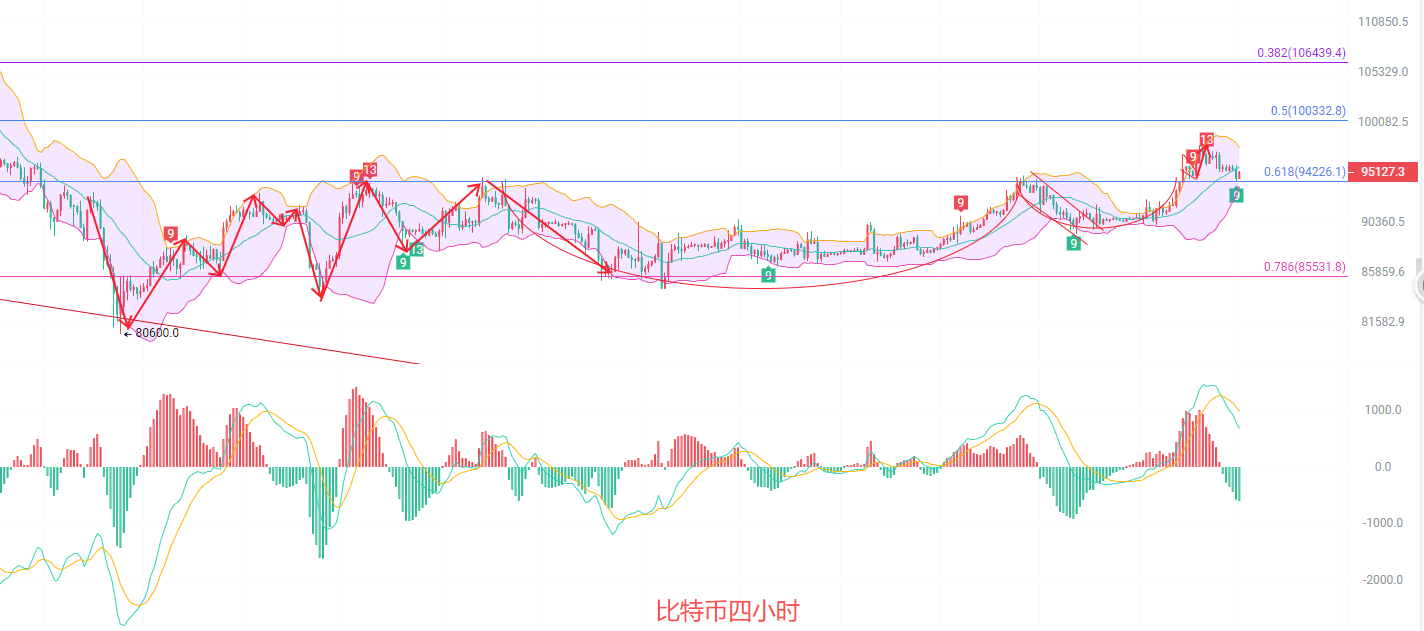 下方94600到94100不破北上,止损400点,目标看95500到96000,破位看96500到97000