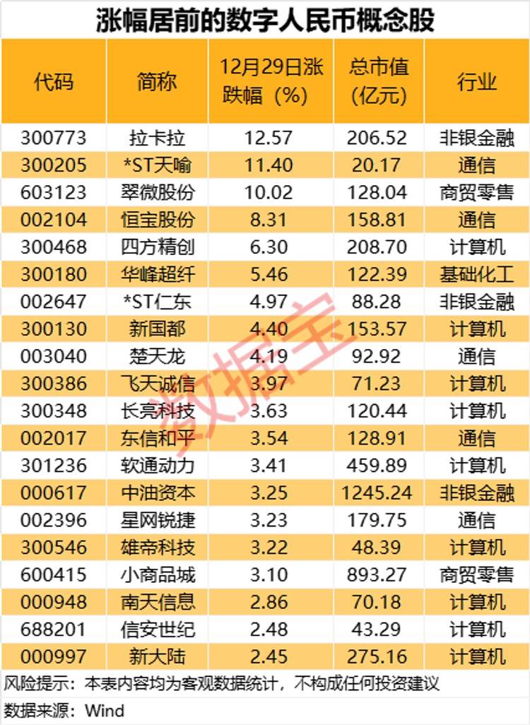 当天数字人民币概念股直接“炸”了:恒宝股份盘中涨停,拉卡拉涨12.57%,*ST仁东封板;还有7只股主力净流入超1亿元,拉卡拉以3.71亿元排第一。
