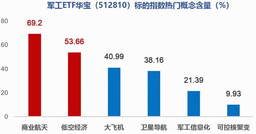 数据来源:iFinD,截至2026.1.18。上述含量占比指数分别为商业航天指数(886078)、低空经济指数(886067)、大飞机指数(885566)、卫星导航指数(885574)、军工信息化指数(886076)、可控核聚变指数(886065)。