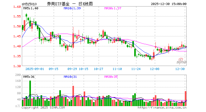 12月30日,券商ETF基金(515010)跌0.14%,成交额1.31亿元。当日份额增加6550.00万份,最新份额为14.18亿份,近20个交易日份额增加1600.00万份。最新资产净值计算值为19.78亿元。