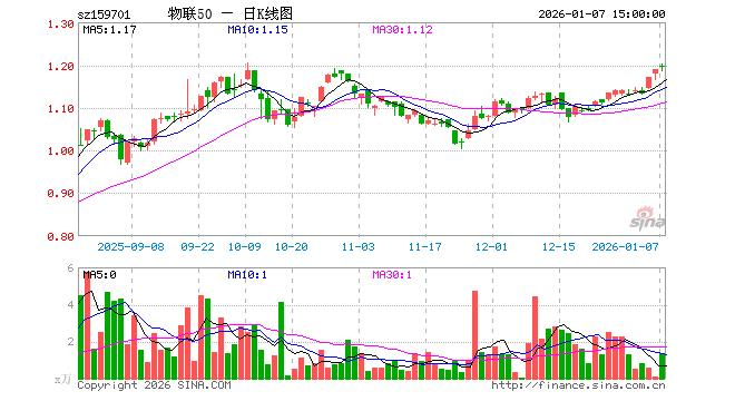 1月7日,物联网ETF招商(159701)涨0.42%,成交额164.90万元。当日份额减少200.00万份,最新份额为870.56万份,近20个交易日份额减少200.00万份。最新资产净值计算值为1040.67万元。