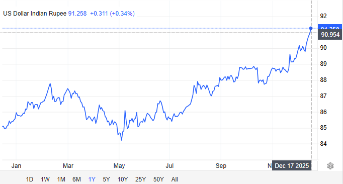 受关税与资本外流影响,印度卢比已触及历史低位(91:1),印度央行通过抛售美元维持汇率稳定,外汇储备连续八周下降,韩元则因国内问题与出口复苏面临贬值压力(投资美国对其外汇储备的影响),让韩国央行近期一直处于“监测状态”。这种“升值与贬值压力并存”的格局,决定了亚洲货币市场难以形成统一的干预共识。