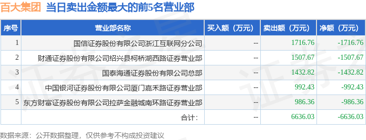 证券之星消息,沪深交易所2025年12月29日公布的交易公开信息显示,百大集团(600865)因有价格涨跌幅限制的日收盘价格跌幅偏离值达到7%的前五只证券登上龙虎榜。此次是近5个交易日内第1次上榜。