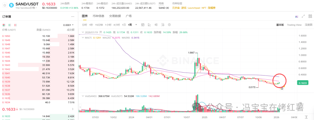 提一下sand,最近有利好,而且月线、周线都是底部,这种形态如果是主流币,肯定要大涨,但目前主流币走的不好看,山寨不知道能不能有一波拉升。