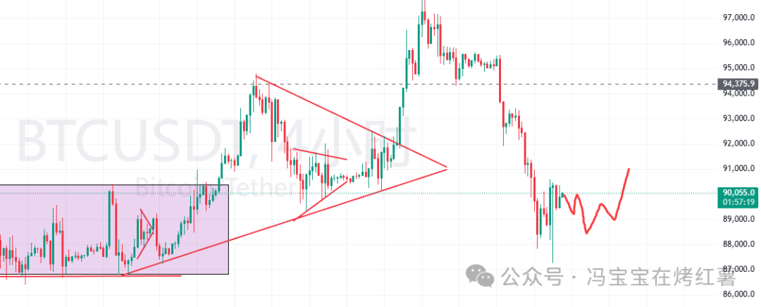 建议在88500附近挂单接多,这个位置在二次探底的分割线附近,止损参考短期低点就行。能成功进场的话,差不多能赚3000点以上,值得一搏!
