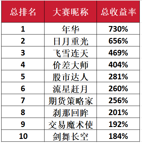 “经·粮杯—全国期货模拟争霸赛”2025年12月收益率排名(前十)