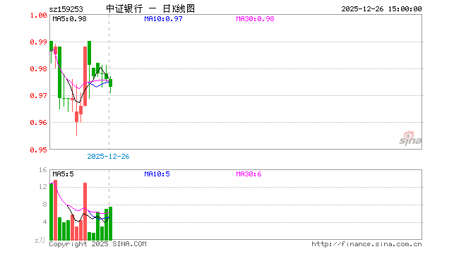 12月26日,中证银行ETF(159253)跌0.31%,成交额729.93万元。当日份额增加90.00万份,最新份额为1.53亿份。最新资产净值计算值为1.49亿元。