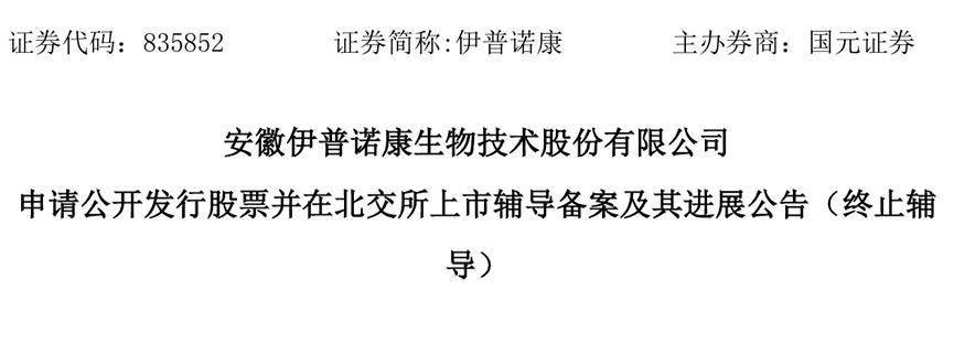 另一家新三板挂牌公司伊普诺康(835852)同日公告披露,近期,由于我公司自身发展战略规划等需要,经双方协商一致,决定终止本次上市辅导工作,国元证券于2026年1月15日向安徽证监局报送了终止辅导的申请资料,安徽证监局于2026年1月16日确认公司终止辅导。