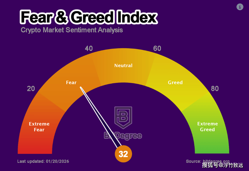 全球加密总市值缩水到约3.12万亿美元,24小时跌幅2.5%-3%,交易量勉强维持在1200亿美元左右。比特币从上周高点98000美元跌到92000美元附近,以太坊也惨遭血洗,跌破3200美元关口,SOL更是不堪一击,重挫6%-8.6%。恐惧与贪婪指数直奔32的“恐惧深渊”。整个市场笼罩在特朗普“格陵兰岛关税”闹剧的阴霾下,这场美欧贸易战的火药味让风险资产集体瑟瑟发抖,altcoin如Solana和XRP更是一泻千里,下跌6%-8%。 但机构ETF资金却涌入市场约7亿美元,为市场注入一丝暖意。