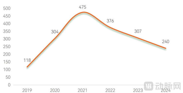 (2019-2024年国内医疗器械领域投融资事件数,数据来源:动脉智库)