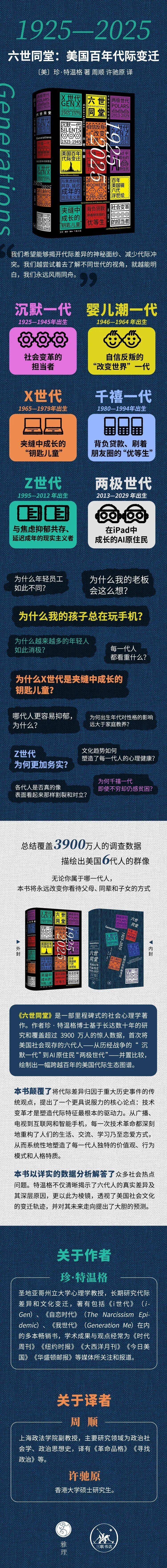 美国圣地亚哥州立大学心理学教授珍·特温格在她的新作《 》中总结到,一个人出生的时代对人的行为、态度、价值观和个性特质影响深远。事实上,一个人出生的时间段对性格和态度的影响要远大于原生家庭。理解代际差异对于理解家庭关系、职场、心理健康、政治、经济政策、市场营销和公共话语至关重要。