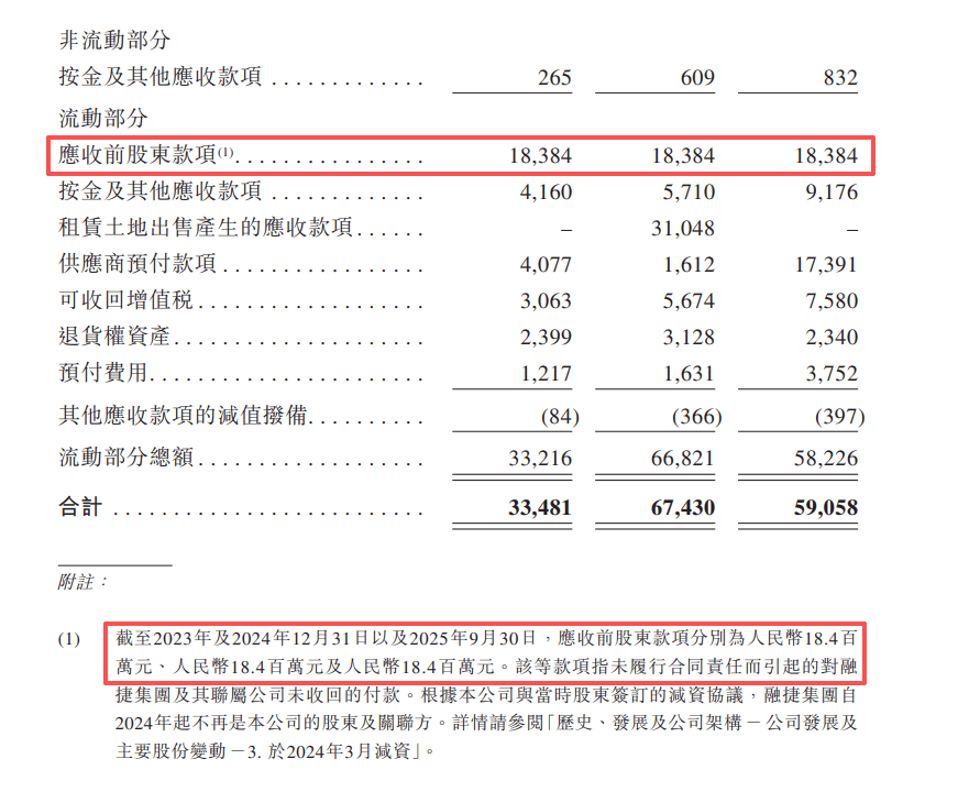 但其中,却留下一个隐患:与融捷集团签署减资协议,还有第三笔、第四笔约0.6亿元款项尚未达成先决条件。招股书中提及,其中一项先决条件规定,融捷集团及其关联公司须先偿还一笔正在拖欠的其他应收账款1838.4万元。