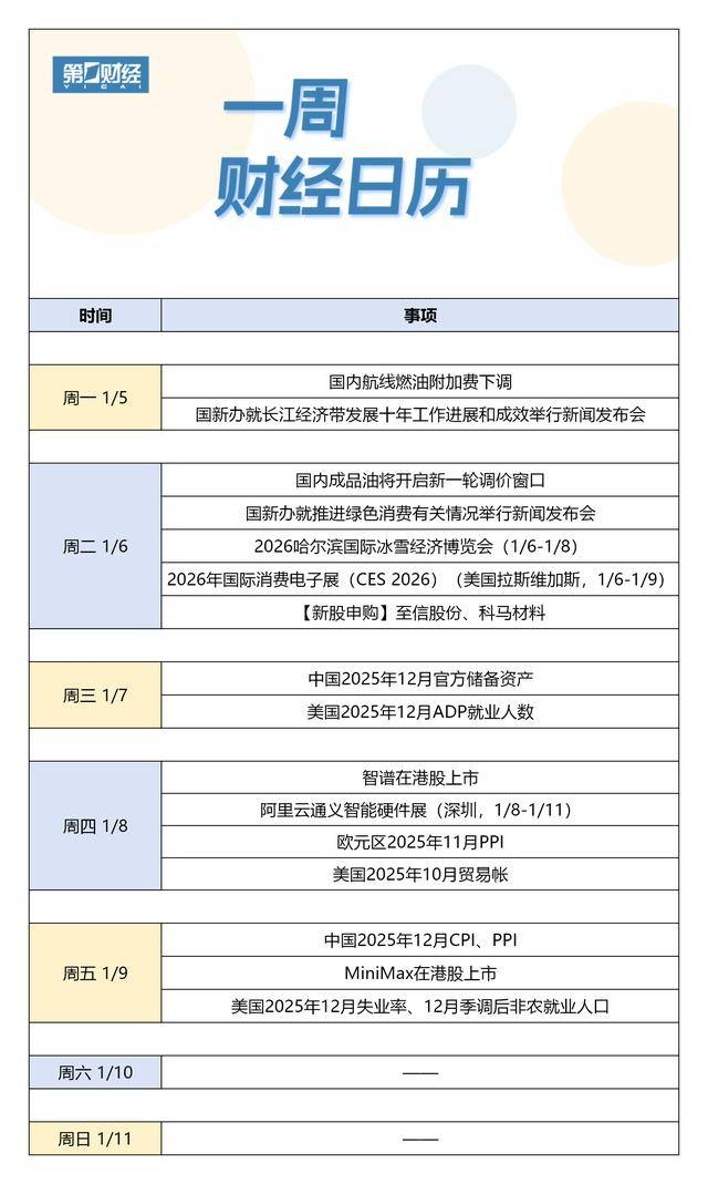 下周财经日历(1月5日-1月11日)