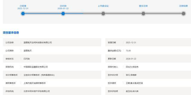 1月22日,上交所官网显示,蓝箭航天空间科技股份有限公司科创板IPO审核状态变更为“已问询”。