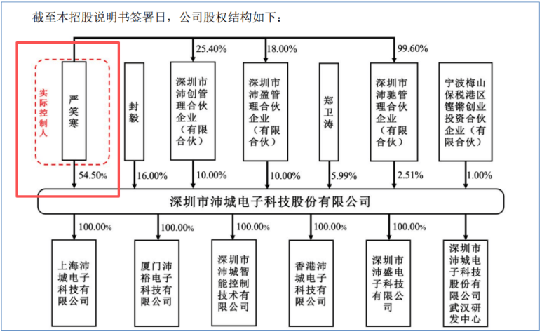 截至招股书签署之日,沛城科技控股股东、实际控制人为严笑寒,合计控制公司77.01%的股份,并担任公司董事长。